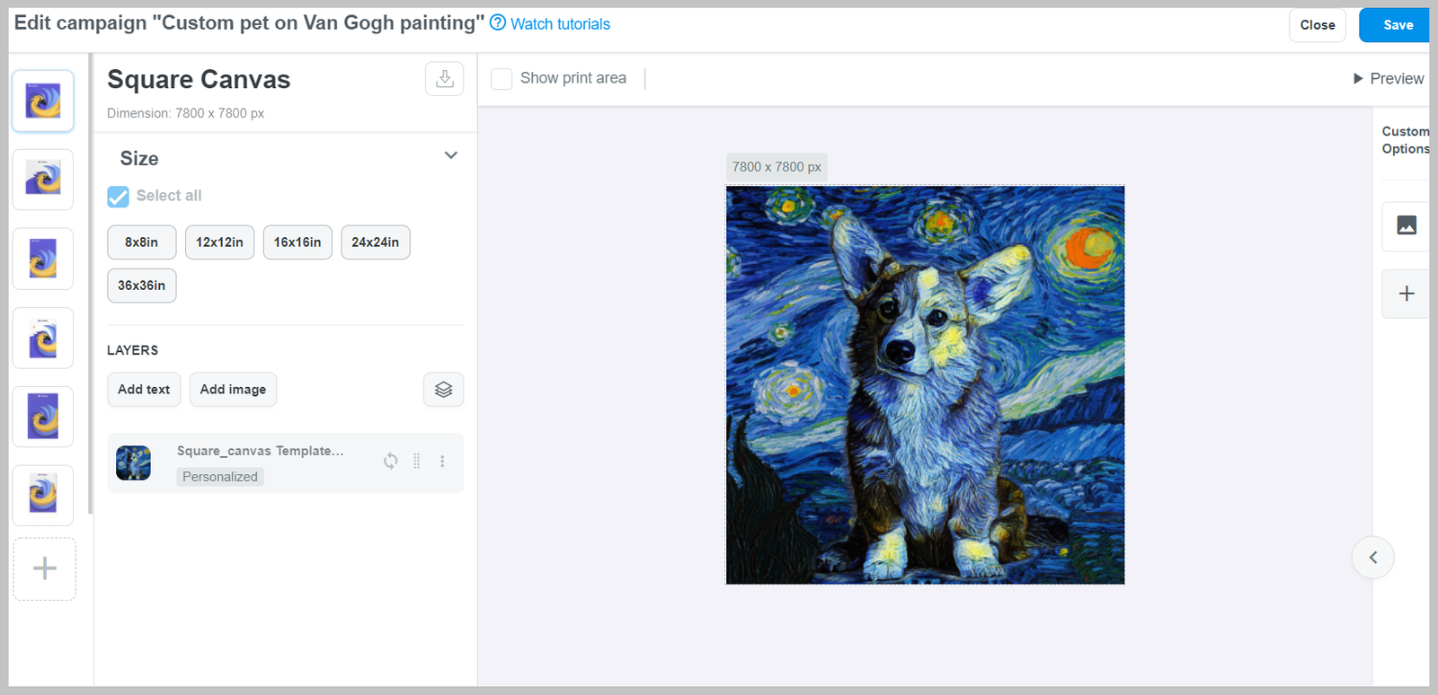 For some specific campaigns with complex designs such as this one with Van Gogh style painting of customer's pet, merchants need to edit different layers of personalization before fulfilling orders. This can be very difficult and time-consuming for merchants, especially when dealing with a large number of orders without a design team.