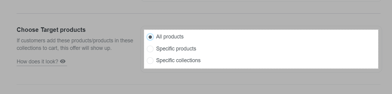 The rules for Specific by base category only applies to print-on-demand campaigns. In case you choose this option, the system will display recommendations of product variations from one of the products of the selected product category, in the same campaign with the product you choose in the Choose Target products section. For example, the product in the Choose Target products section is a T-shirt under campaign A, you choose Specific by base category in the Choose Recommend products section with the categories Drinkware and Shoes, then the offer displayed to the customer may be mugs or shoes from the same campaign A.