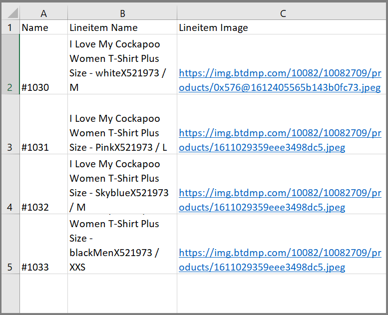 Then, all the images converted from the product image links will be immediately displayed in the right column of the Lineitem Image column corresponding to each product as shown below: