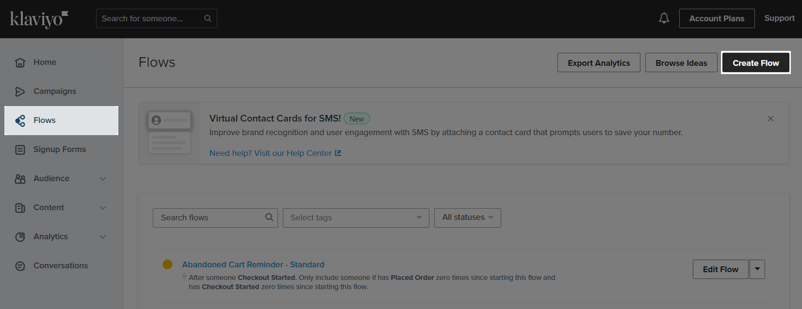 In your Klaviyo main menu, go to Flows > Create Flow.