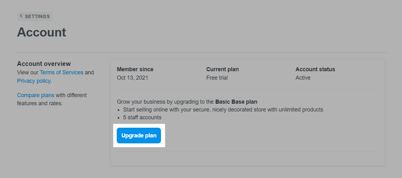 Upgrade your plan whenever you want during the trial without losing any of the work that you’ve put into your store.