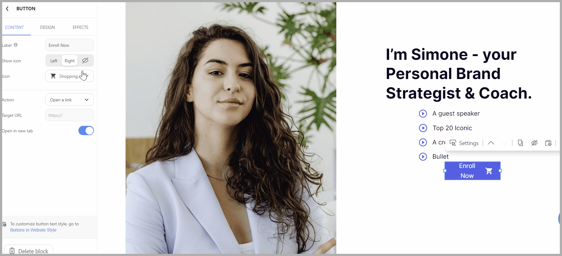 For Bullet blocks, you can add, delete, rearrange, and change bullet icons to your preference.