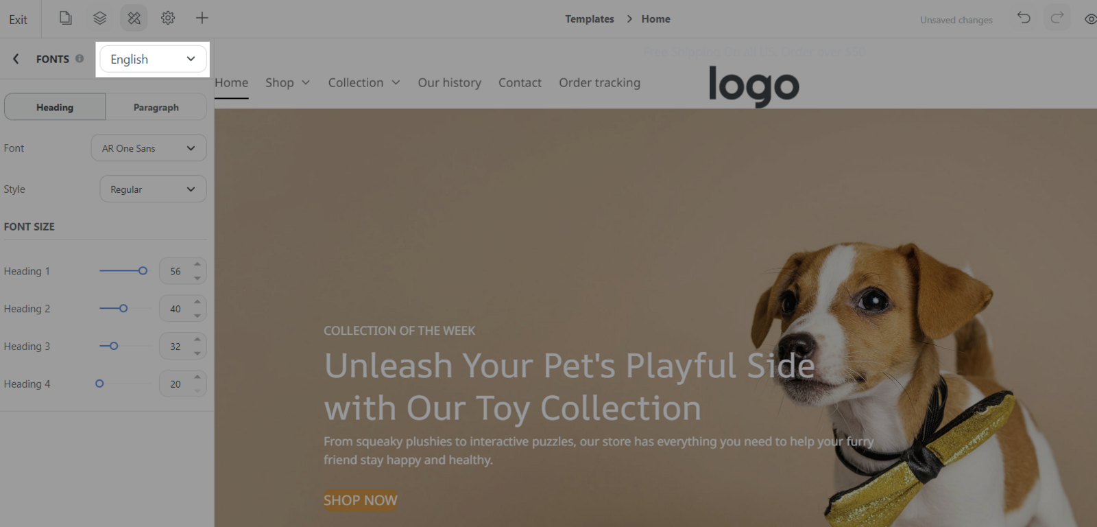 Most of the fonts can not support all languages. ShopBase prioritizes making your webiste visually appealing and readable across languages. Noto Sans font is on default for all languages (except English, which follows the pre-set of ShopBase template). You can customize the style and size of your website font.