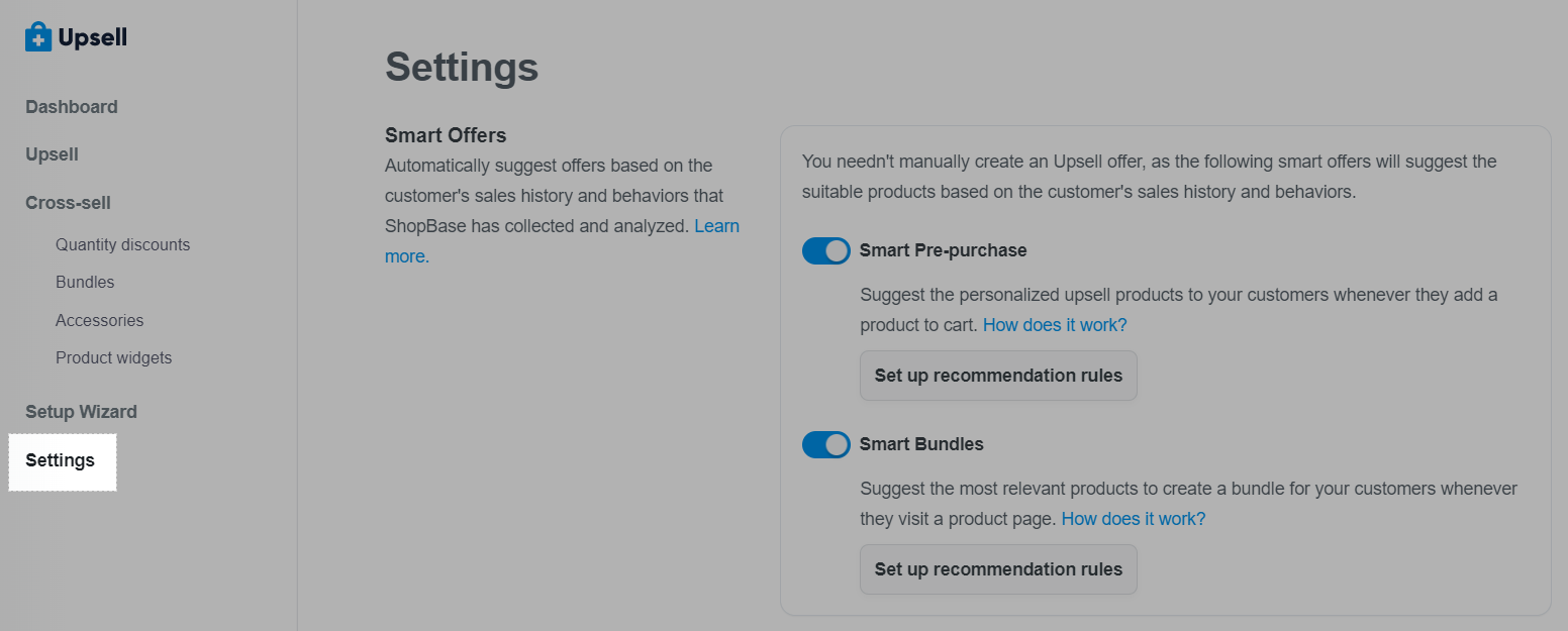 Trong trang ứng dụng Boost Upsell, đi tới Settings.