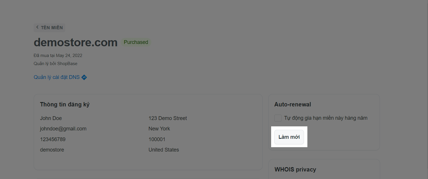 Gia hạn tên miền thủ công tại trang quản trị ShopBase