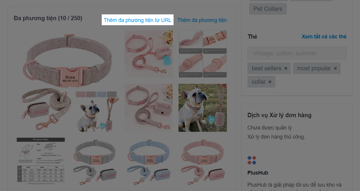 Bạn có thể thêm tối đa 500 phương tiện (bao gồm cả hình ảnh và video) cho một sản phẩm.