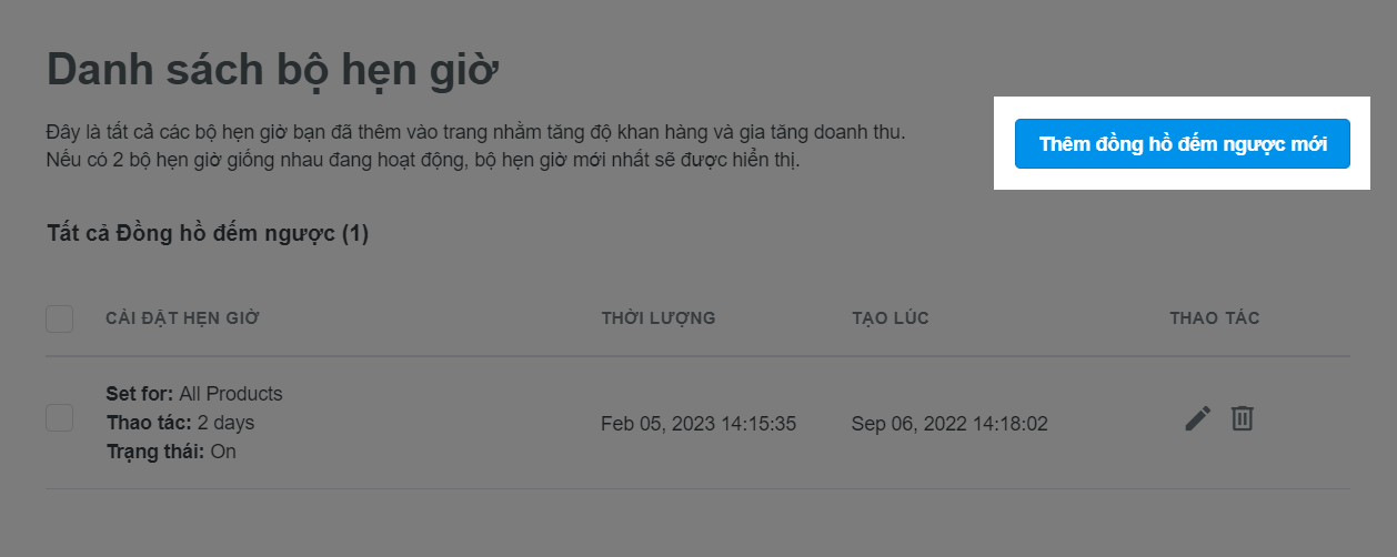 Nhấp vào Thêm đồng hồ đếm ngược mới (Add new timer countdown).