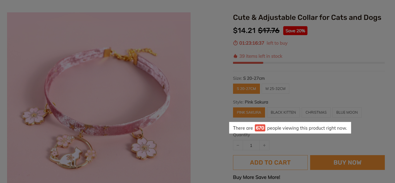Bạn có thể bật tính năng này để hiển thị bộ đếm số lượng khách truy cập hiện đang xem trang sản phẩm để khuyến khích khách hàng mua hàng. Bộ đếm số lượng khách hàng sẽ được hiển thị như bên dưới.