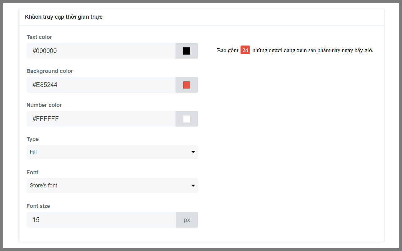 Trong mục Khách truy cập thời gian thực (Real-time visitors), bạn có thể tùy chỉnh màu sắc và phông chữ của bộ đếm số lượng khách hàng truy cập: