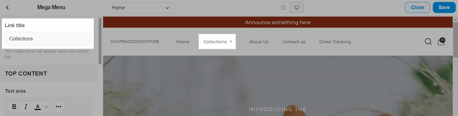 Tên tiêu đề của menu cần được nhập chính xác ký tự theo main menu (không phân biệt chữ hoa). Ví dụ, nếu bạn muốn mega menu hiển thị dưới mục "MEN", mục Link title sẽ phải điền chính xác là "MEN".