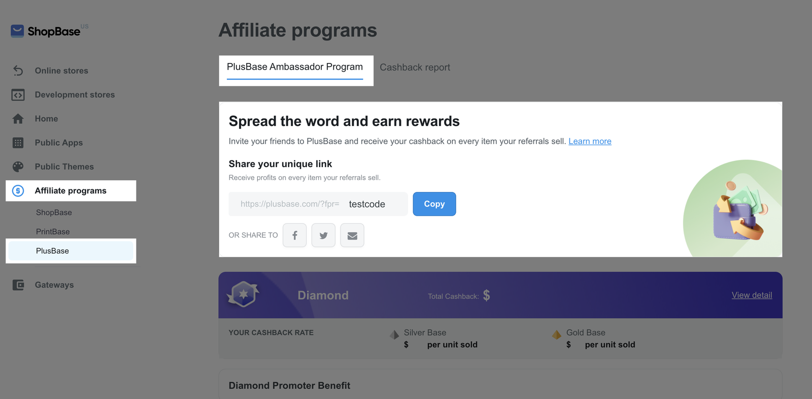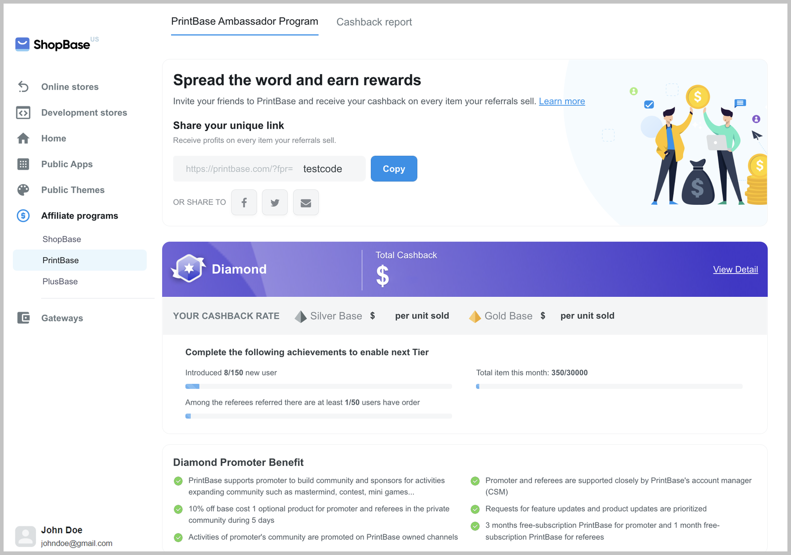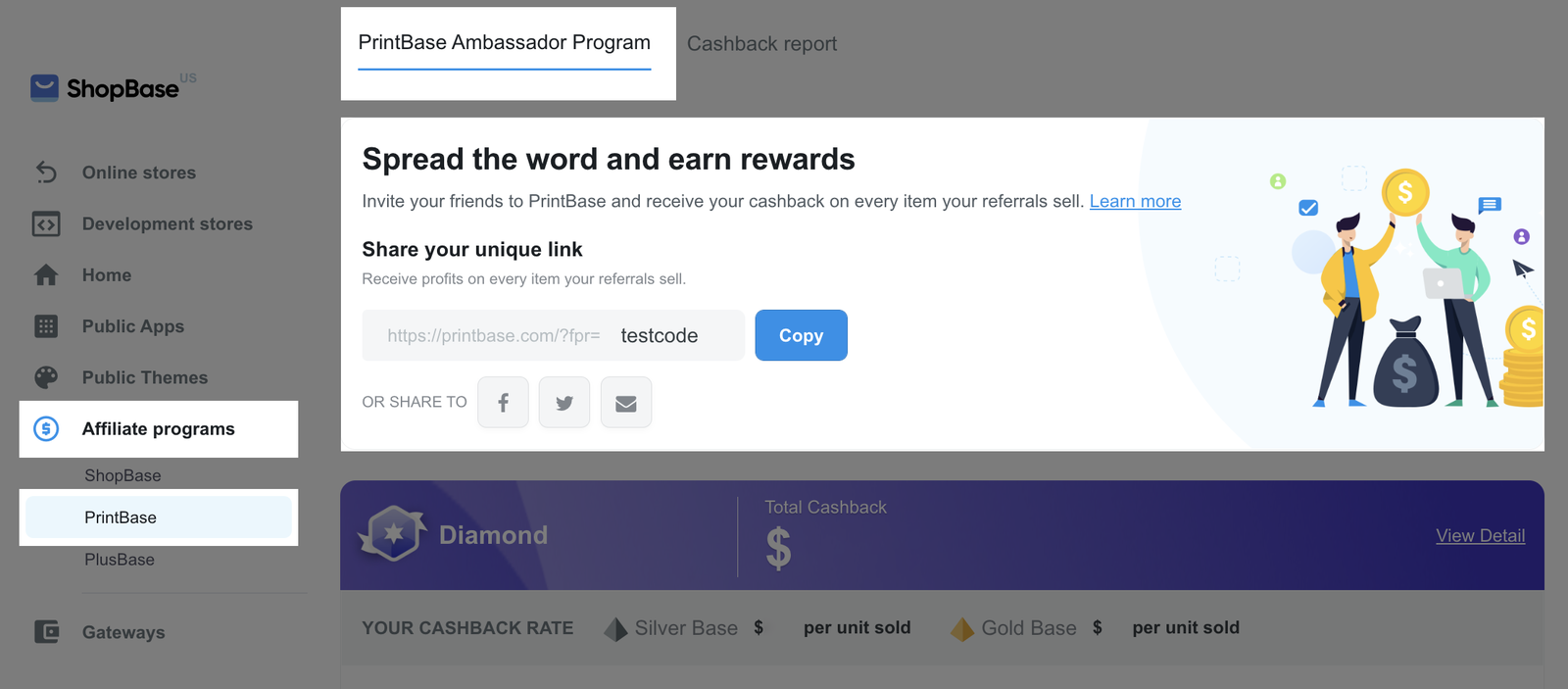 ShopBase 目前提供三个活动——ShopBase Affiliate、PrintBase Ambassador 和 PlusBase Ambassador。