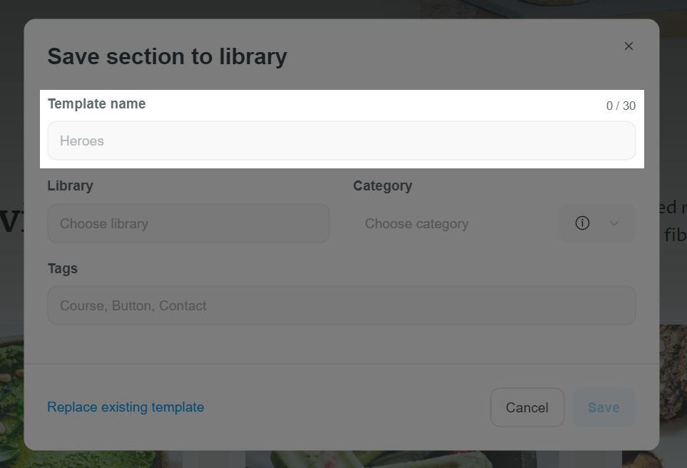Website Builder:点击block/section,点击 Save as template 图标保存为模板。